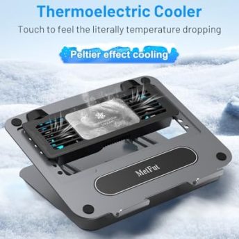 • Sale! Laptop Cooling Pad with Detachable Fan & Thermoelectric Cooler, Adjustable Height & Angle, 360 Rotation Base, Carbon Steel Framework, Ultra-Quiet & Super Sturdy for up to 15.6” Laptop