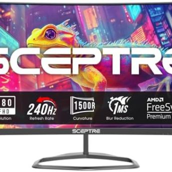 • Sale! Sceptre New Curved 24.5-inch Gaming Monitor up to 240Hz 1080p R1500 1ms DisplayPort x2 HDMI x2 Blue Light Shift Build-in Speakers, Machine Black 2025 (C255B-FWT240 Series)